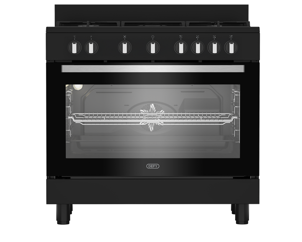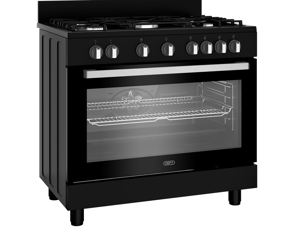 Master versatile cooking. The Defy 90cm Gas/Electric Stove Black DGS90GEB combines powerful burners with a reliable electric oven.