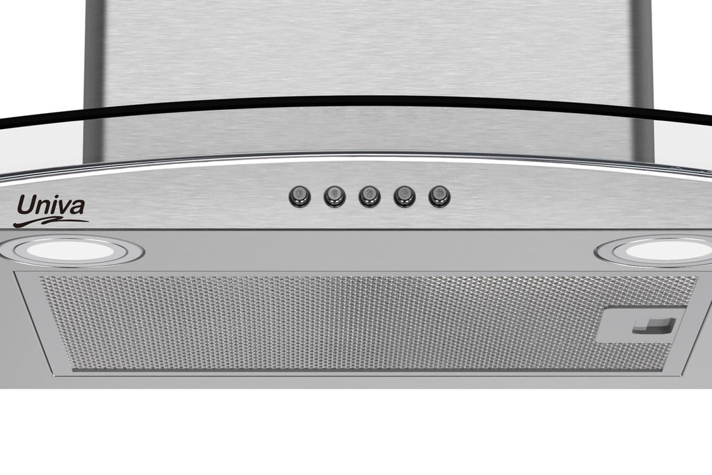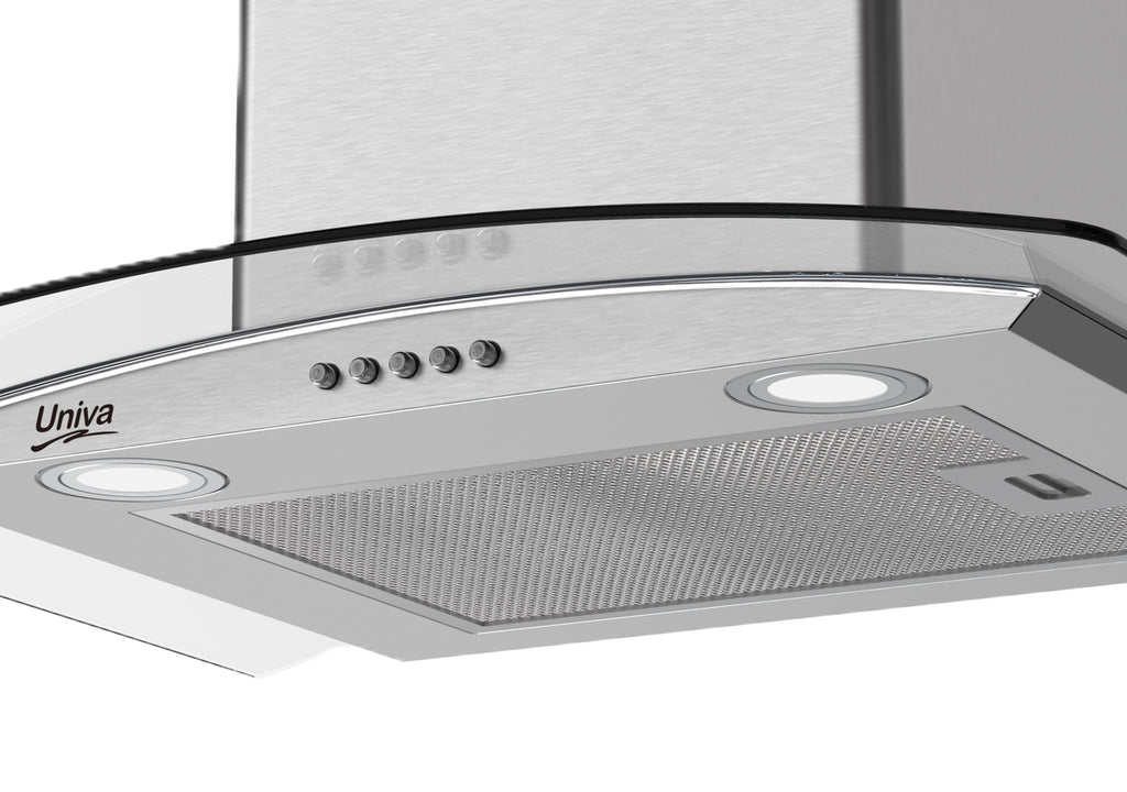 Keep your kitchen fresh. The Univa 60cm Wall Mounted Curved Glass Chimney Cooker Hood U600SCG-1 offers powerful extraction and sleek style.